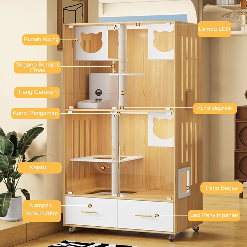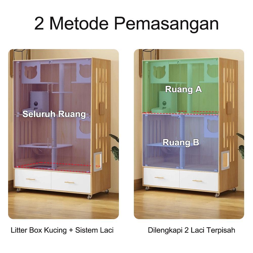 L&Q Rumah Kucing/ Kandang Kucing Produk Kayu Kaca Aman 360 Derajat Tahan Air dan Lembab Kandang Kucing