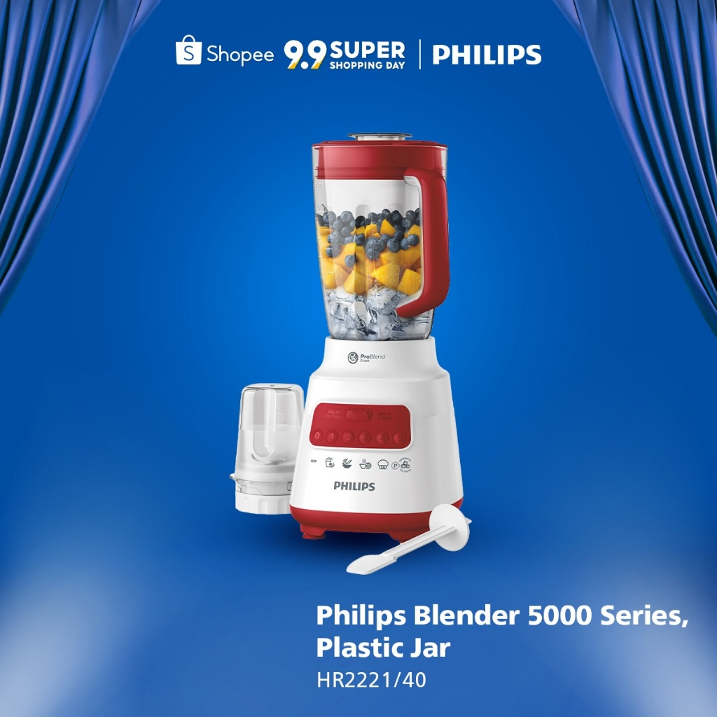 [Mall] Blender Philips Plastik 2 liter - 5000 Series HR2221/40 Blender jus - Blender bumbu philips Dry Mill Blender