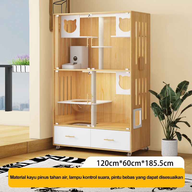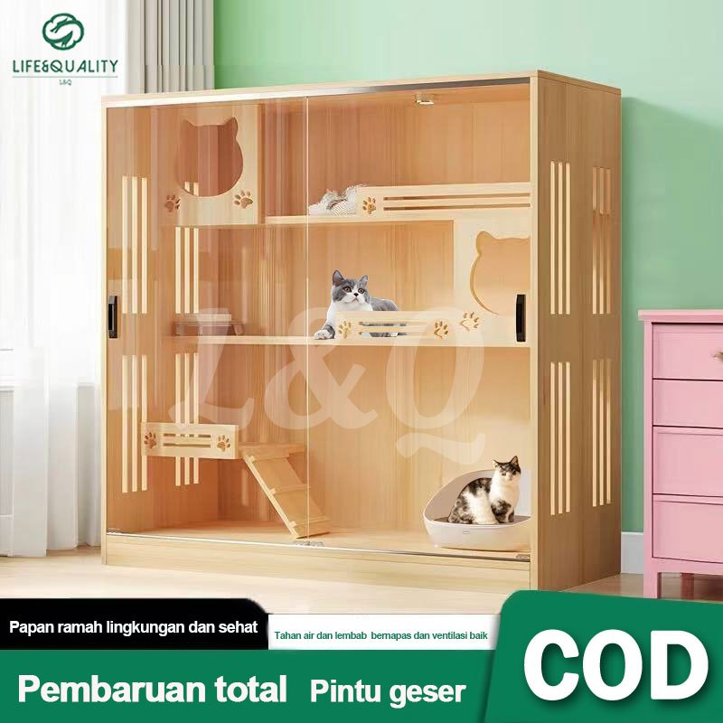 L&Q Rumah Kucing/ Kandang Kucing Produk Kayu Kaca Aman 360 Derajat Tahan Air dan Lembab Kandang Kucing