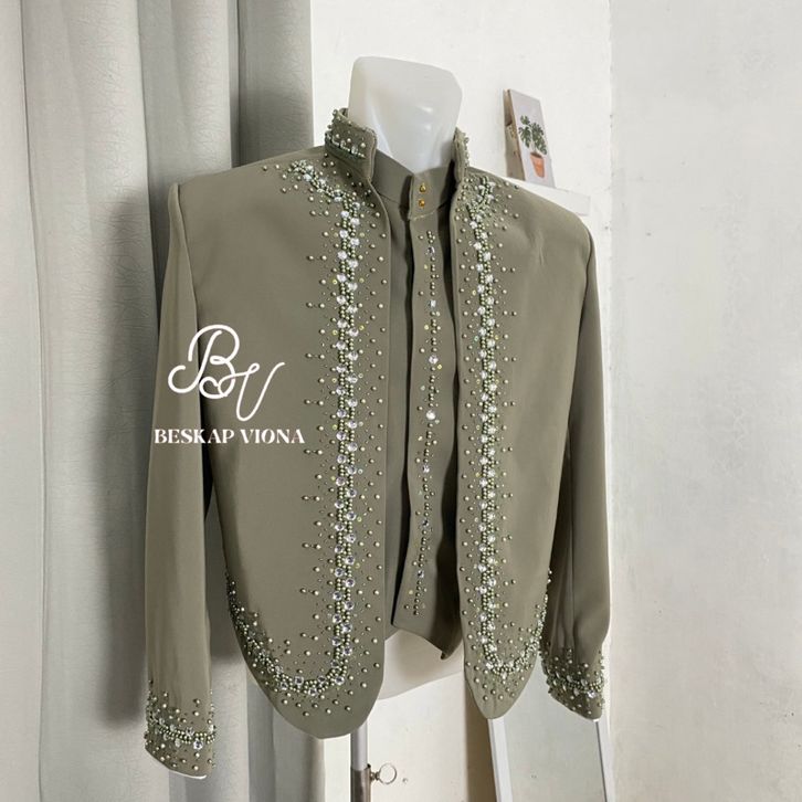 [BESKAPVIONA] Beskap Jawa Pengantin Sage Green Motif Triple Permata