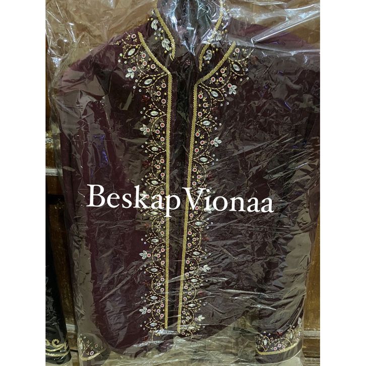 [Beskap Viona] Beskap Pengantin Jawa Adat Jawa Solo Emerald Permata Semi Wool
