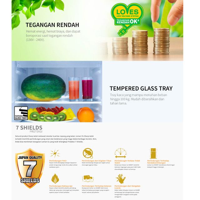 Refrigerator 2 Door KIREI Series - Kulkas 2 Pintu KIREI Series SJ-316MN-HS 256 LITER