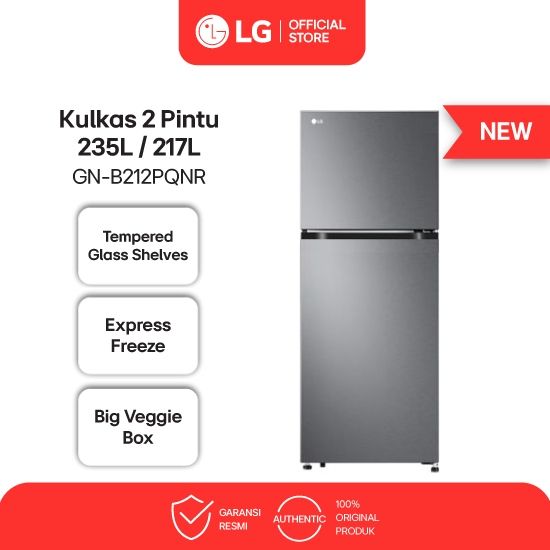 LG Kulkas 2 Pintu 235L / 217L - Shelf Tempered Glass - Express Freeze - Dark9raphite Steel - M0Del GN-B212PQNR