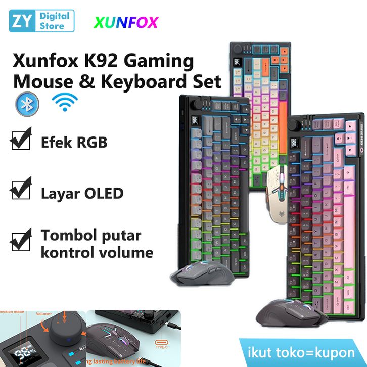 TERLARIS !!!XunFox K92 Set Keyboard & Mouse Gaming Nirkabel Dual e 2.4G + Bluetooth 80 Tombol Tata Letak Ringkas
