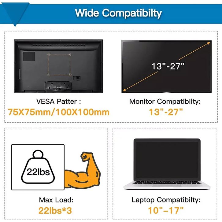 TERLARIS !!!Triple W Monitor Laptop Triple Stand Bracket Mount Desk Clamp Breket