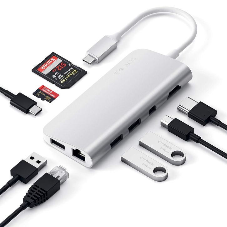 TERLARIS !!!Satechi Type-C Multimedia Adapter 9-in-1, USB-C PD Mini DP HDMI Ethernet SD