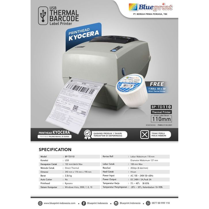 TERLARIS !!!Printer Bare Thermal Printer Label Resi A6 BLUEPRINT BP-TD110