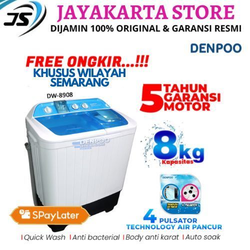 DENPOO MESIN CUCI 8KG TWIN TUB DW 8908 4P BIRU TERMURAH DAN SUPER HEMAT LISTRIK PROMO