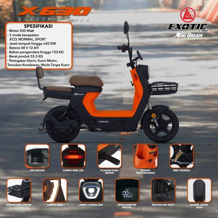 Promo SEPEDA LISTRIK EXOTIC X 630 WATT + GRATIS PACKING BUBBLE New