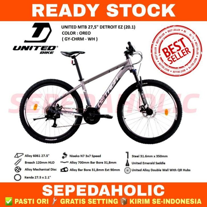 Sepeda Gunung 27.5 Inch MTB UNITED DETROIT EZ Alloy 21 Speed Garansi Resmi 5 Tahun