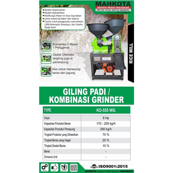 Mesin Giling Padi MAHKOTA KD555 WG / Rice Mill Polisher Kombinasi Mesin Penepung MAHKOTA KD 555 WG Mesin Selep 2in1 DIS