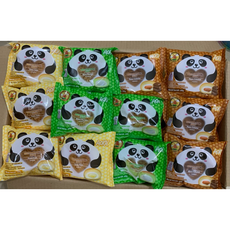 RB AOKA PANDA Roti Panggang isian 1 dus isi 60pcs ada Rasa Coklat,Keju,Vanilla,Pandan danSusu
