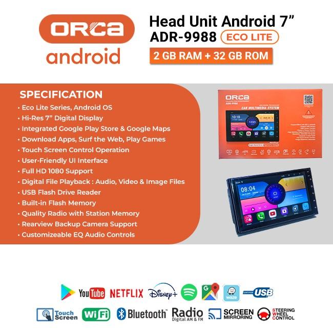 HEADUNIT ANDROID ORCA ECO LITE CARPLAY 7 INCH RAM 2/32