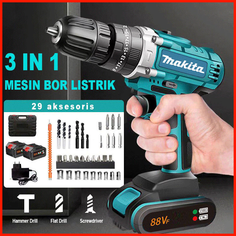 bor listrik 88vf Mesin bor 2baterai cas 10mm bor listrik murah bor tangan baterai besi tembok Beton kayu - Cordless Dril