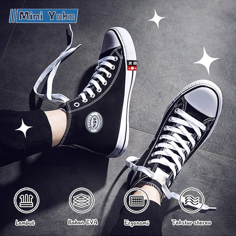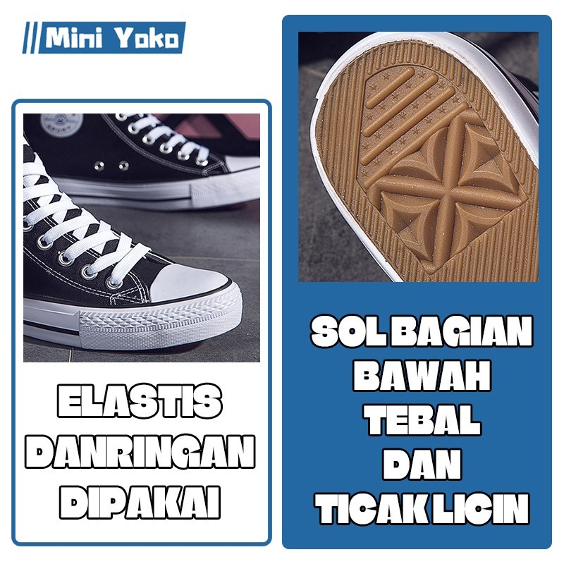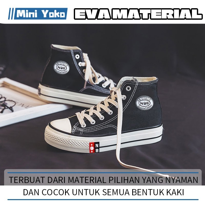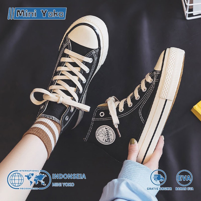 Miniyoko Sepatu Kanvas Wanita Hitam Terbaru Karet Anti Slip Sepatu Wanita Kekinian Bertali Kanvas Polos Gaya Korean