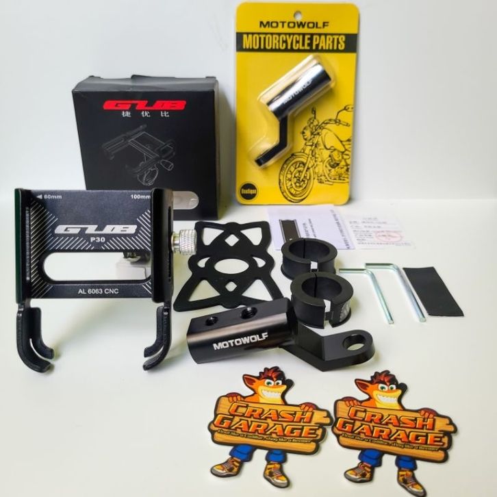GUB P30 Phone Holder + Bracket Spion MOTOWOLF Original Alumunium Alloy Holder Hp Motor Dudukan Hp Tempat Handphone di S