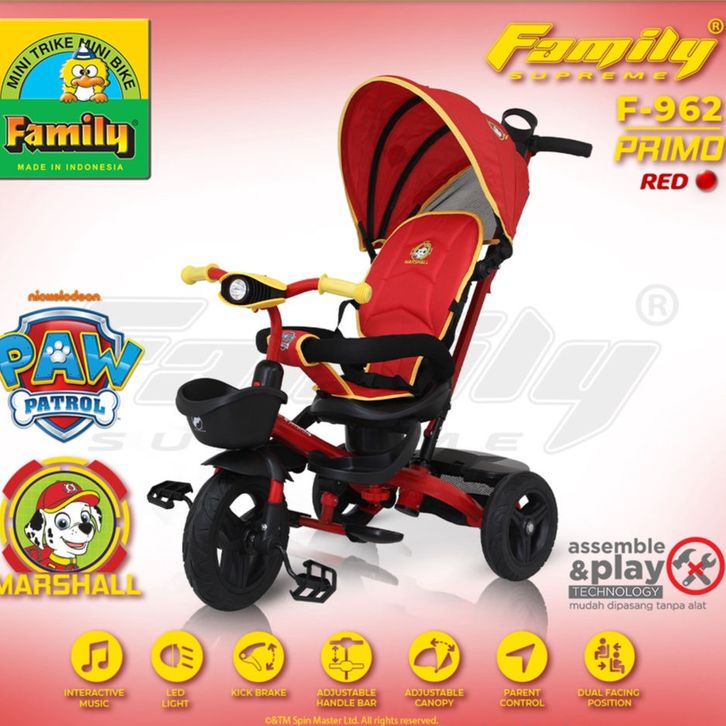 TERBARU Family Sepeda Roda Tiga Anak 1 tahun Sepeda Roda 3 Bayi Tricycle Anak Sepeda Anak Roda 3 Stroller Primo F962