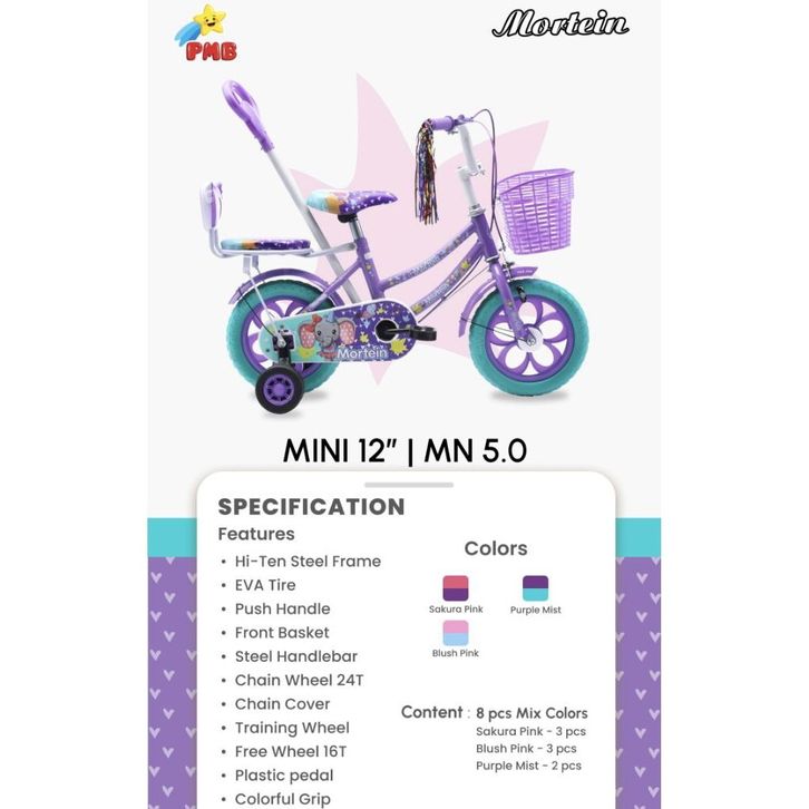 TERBARU SEPEDA ANAK PEREMPUAN 12 INCH FOSTER 55183 PMB MORTEIN MN 5.0 STIR BAN EVA