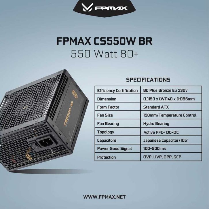 POWER SUPPLAY FPMAX CS550W BR (80+ Bronze) Japanese capacitors SUPORT ATX 3.1 READY