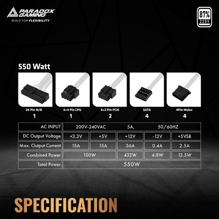 Power Supply 550W Paradox Gaming Falcon PSU 550 Watt