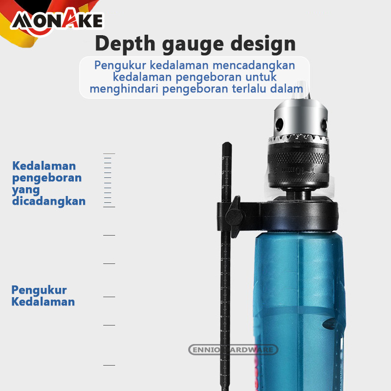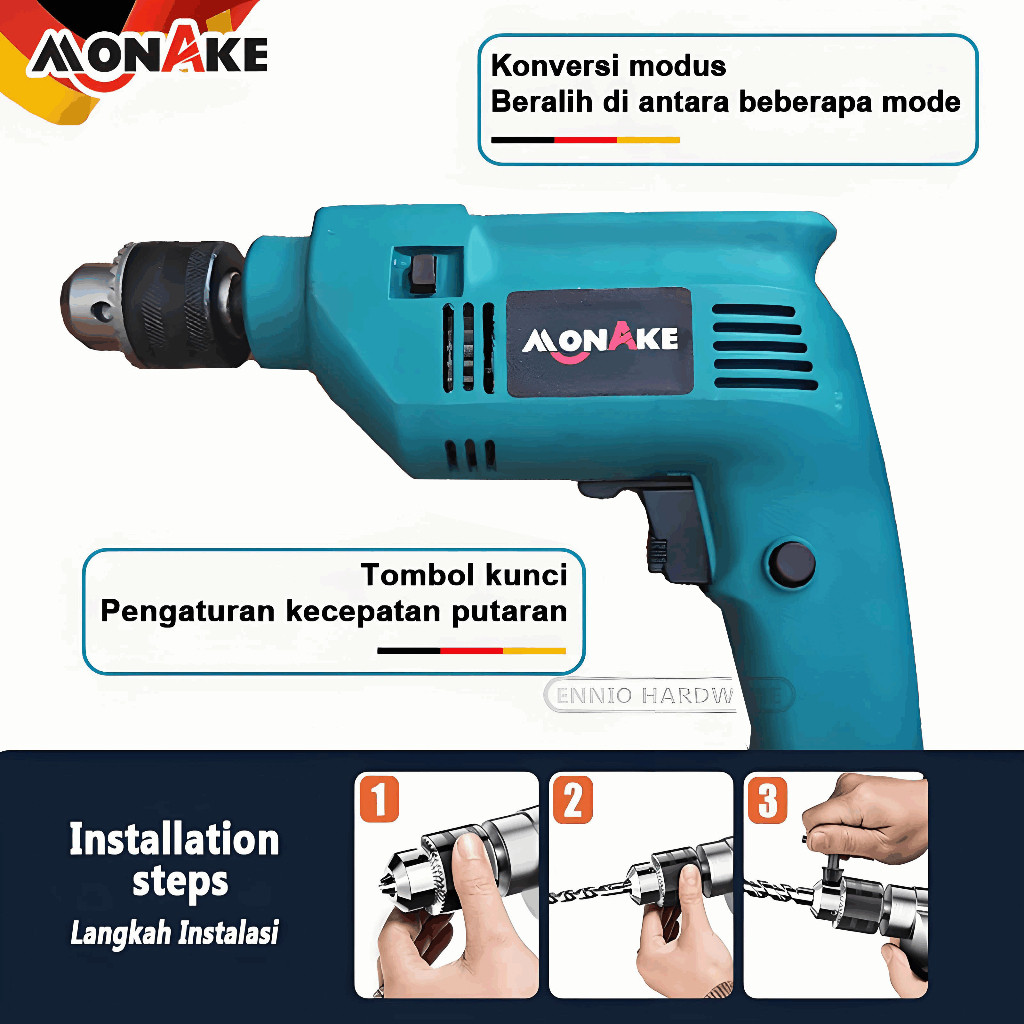 MONAKE German Tool Mesin Bor 13mm Impact Drill Tangan Listrik Electric Drill Koper Set Besi Bor Beton Kayu Tembok Putara