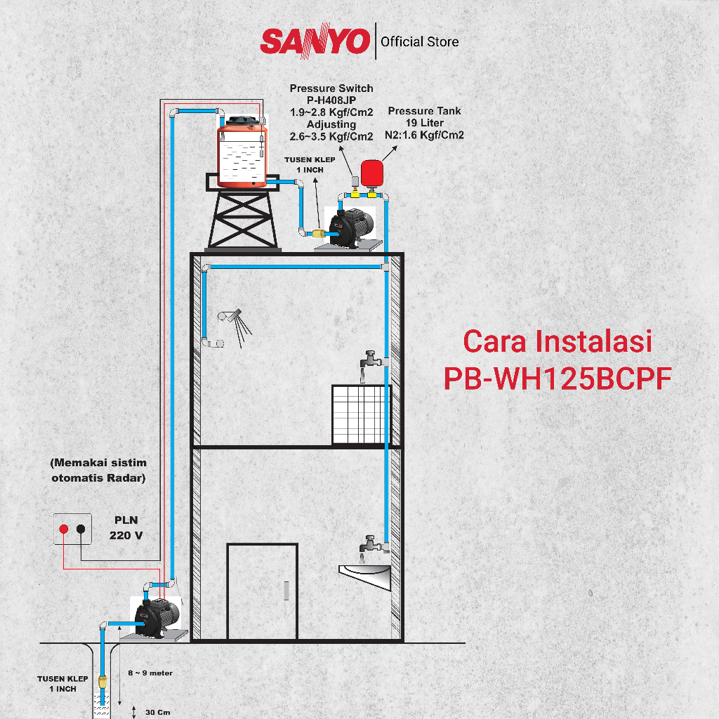 SANYO Mesin Pompa Distribusi Non Otomatis - Distribution Non Automatic Pump - PB-WH125BCPF