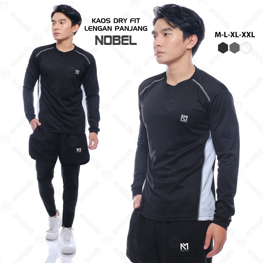 Armisth - Kaos Dry Fit Lengan Panjang Pria Nobel Atasan Olahraga Running Gym Cowo