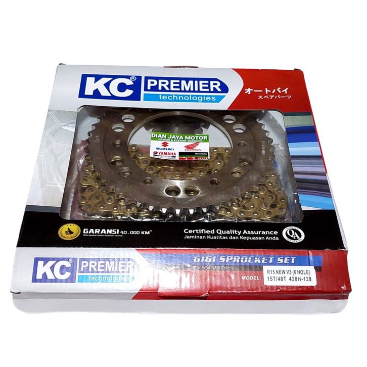 KCP Girset kc Premier Yamaha R15 New V3 6 15T/48T/428H-128 Rantai 6old sss bajja asli gearset Gir paket Depan Belakan