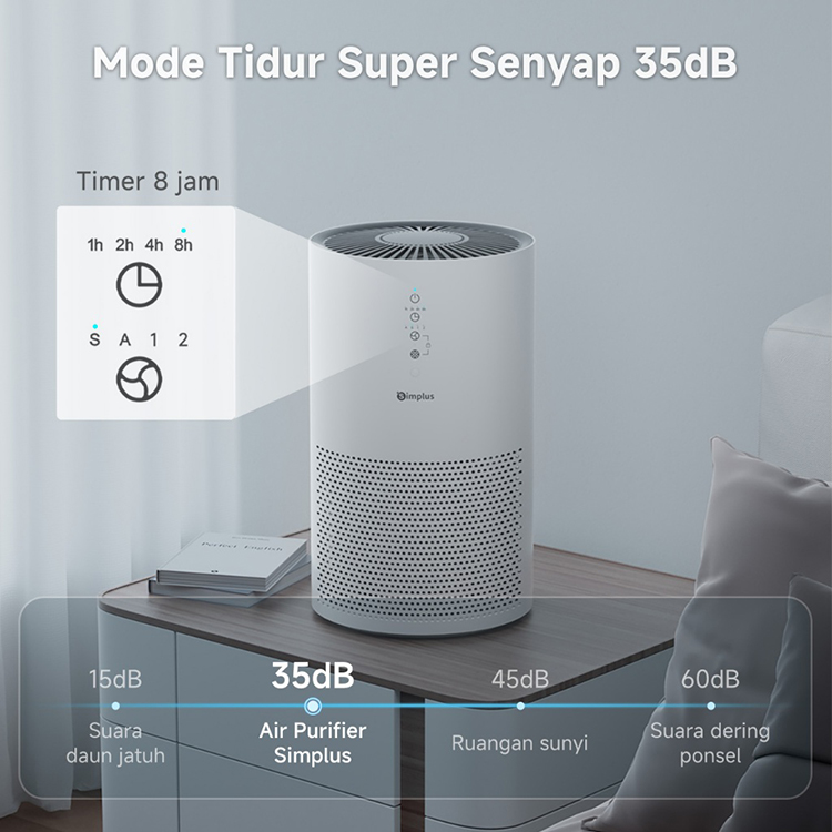 Simplus Air Purifier Penyaringan HEPA H13 Efisien Tingkat Pemurnian Super Senyap 35dB Mode Pintar Otomatis