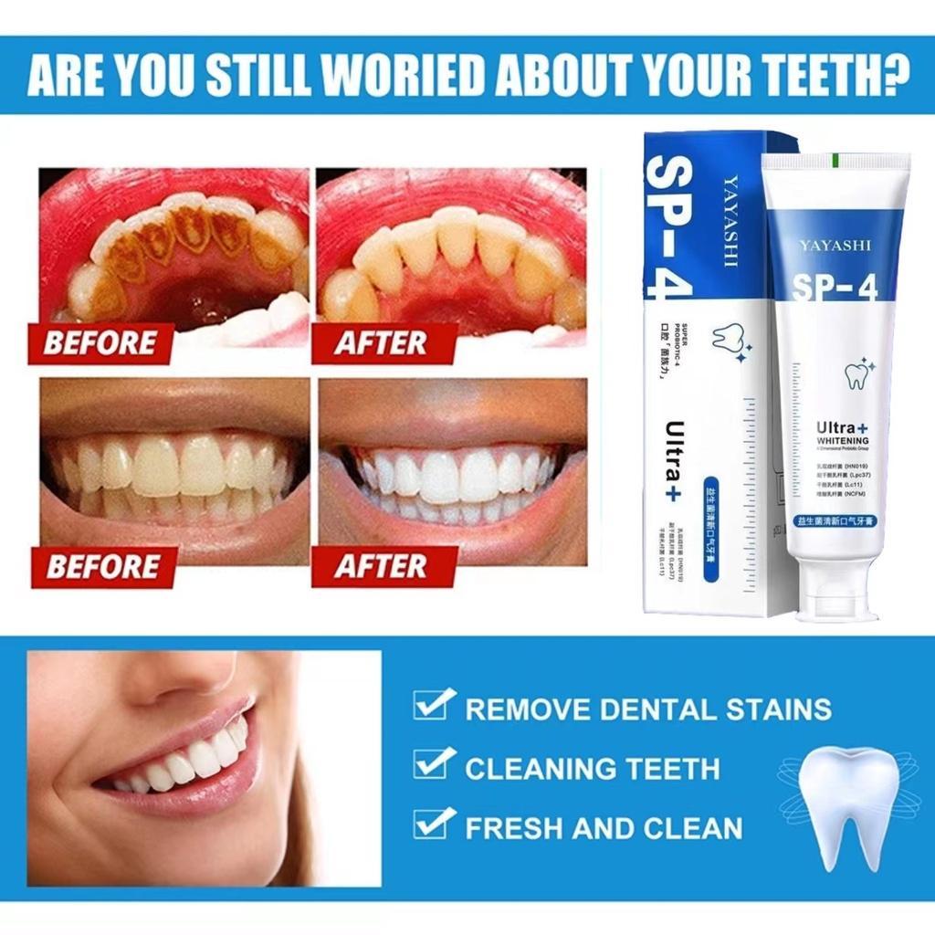 Pasta gigi pemutih probiotik SP4 120g memutihkan gigi kuning dan menghilangkan karang gigi