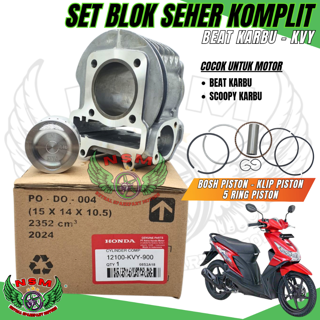 BLOK SEHER KOMPLIT + PISTON KIT BEAT KARBU / SCOOPY KARBU