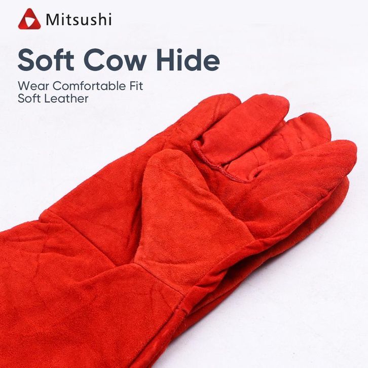 Mitsushi Sarung Tangan Las Kulit Tebal Merah Sarung Tangan Pelindung Las Welding Glove Safety Tahan Panas Wear-Resistant
