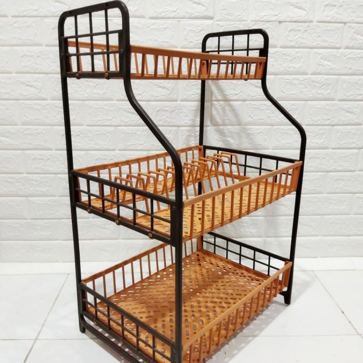 Rak Piring Plastik 3 Susun Coklat Murah Baskom Rak Pengering Peralatan Dapur Minimalis Serbaguna