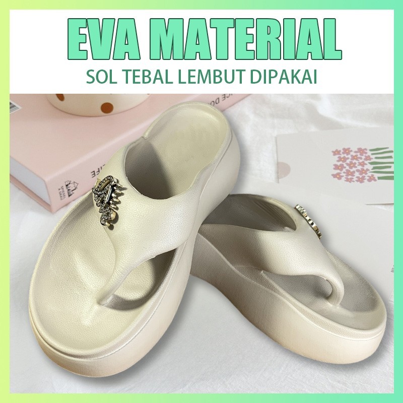 Yink Sandal Wanita Tinggi 5.5CM Wedges Elegan Terbaru Platform Tebal Sendal Jepit Wanita Casual Motif Love Cewek Dewasa