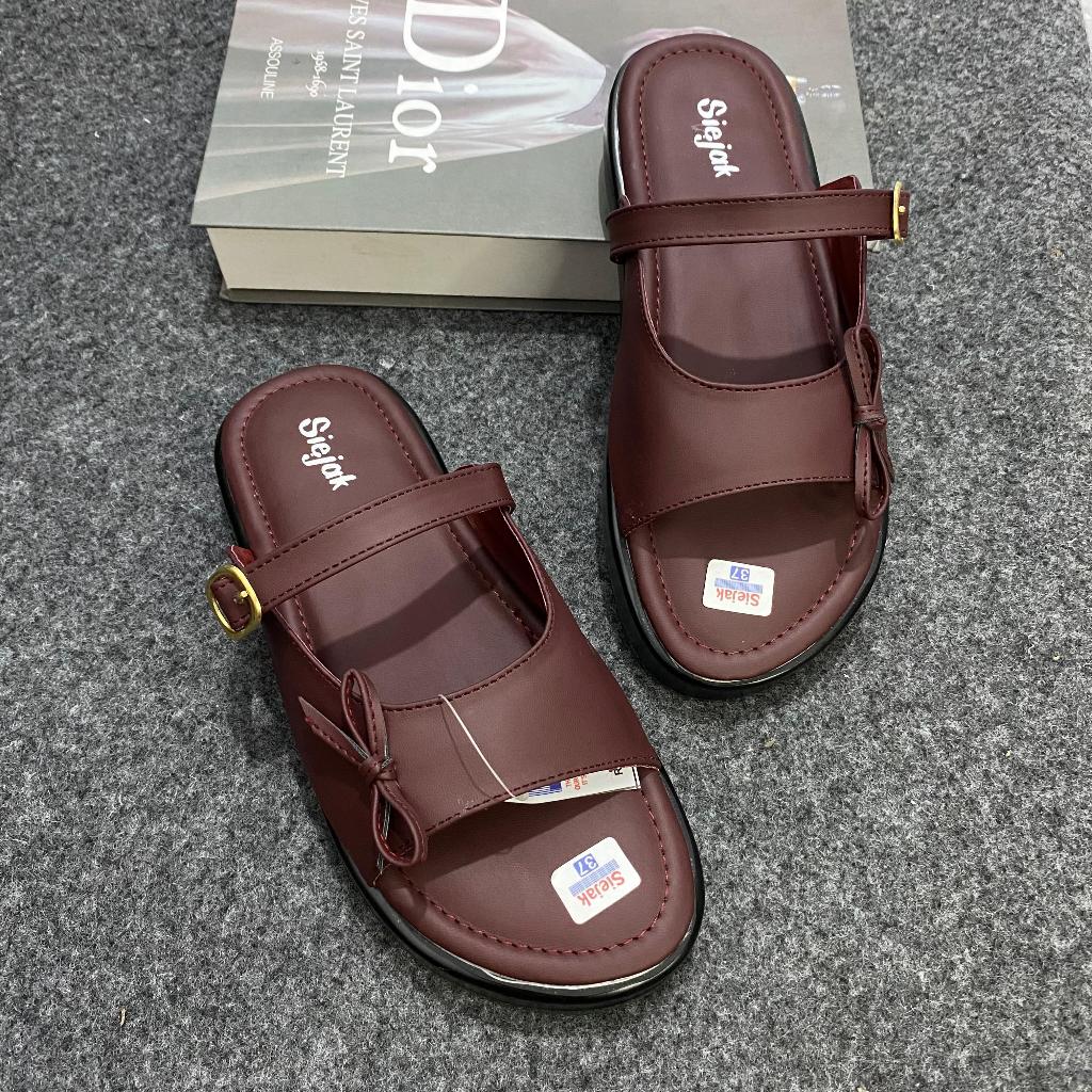 Sandal Platform Wanita Elegant Super Empuk Ringan Kekinian Terbaru Model Slop Tali Gesper Sandal Wanita Lebaran