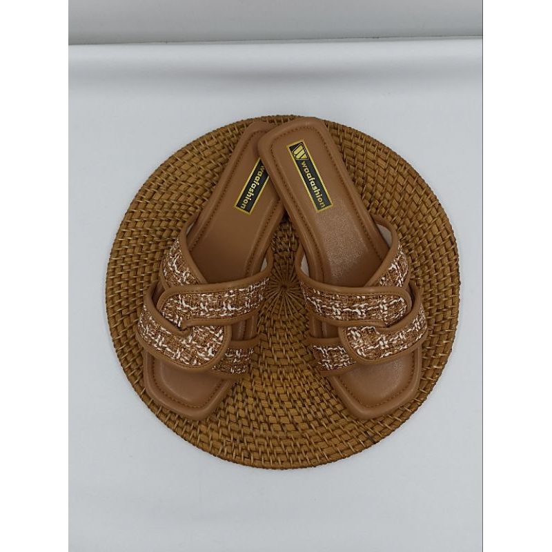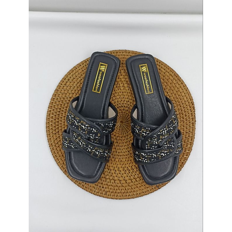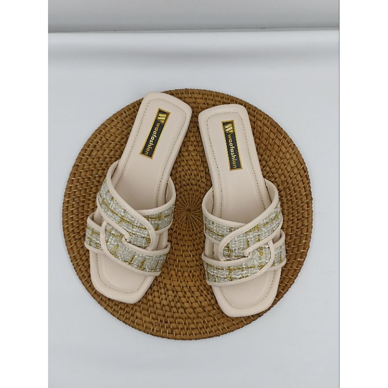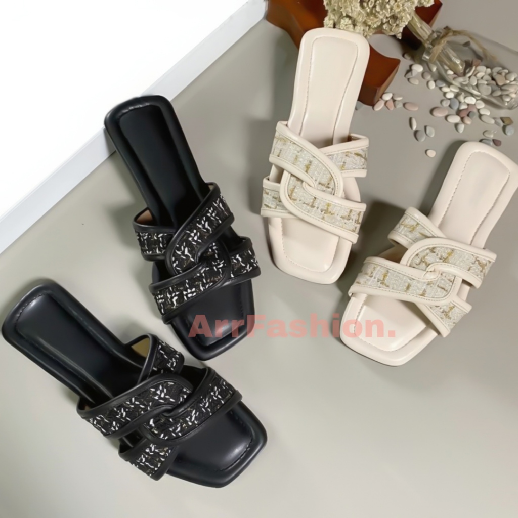 ARRFASHION Sandal Slip On Flat Teplek Wanita Trendy Fashion Bahan Kanvas Sol Karet Anti Licin