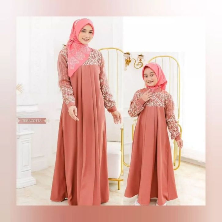 Couple Hilya Dress Setelan Couple Mom & Kids Gamis Terbaru 2023 Dress Bahan Cerutty Babydoll mix Brukat Fashion Muslim