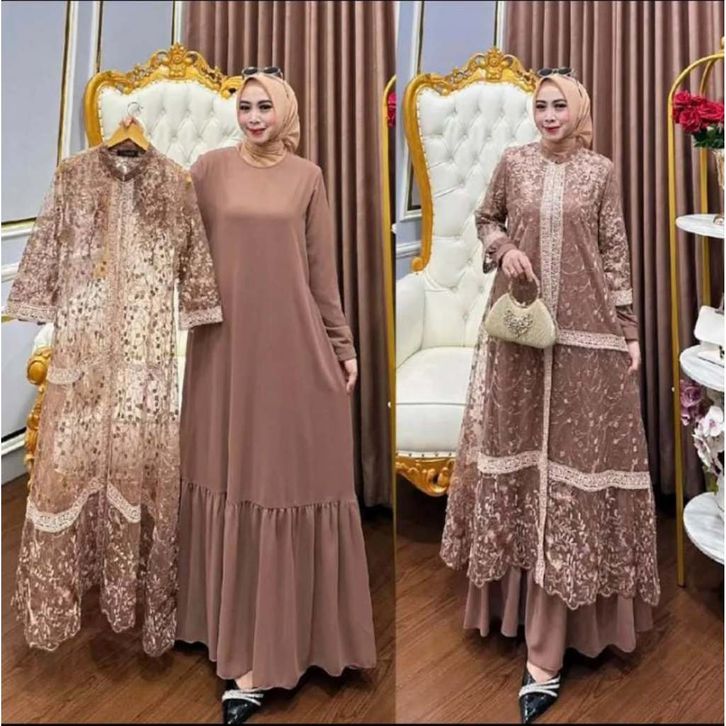 ellyfashion Syakila Dress Brukat Bahan Ceruty Gamis Lebaran 2024 Model Gamis Terbaru Dress Kondangan
