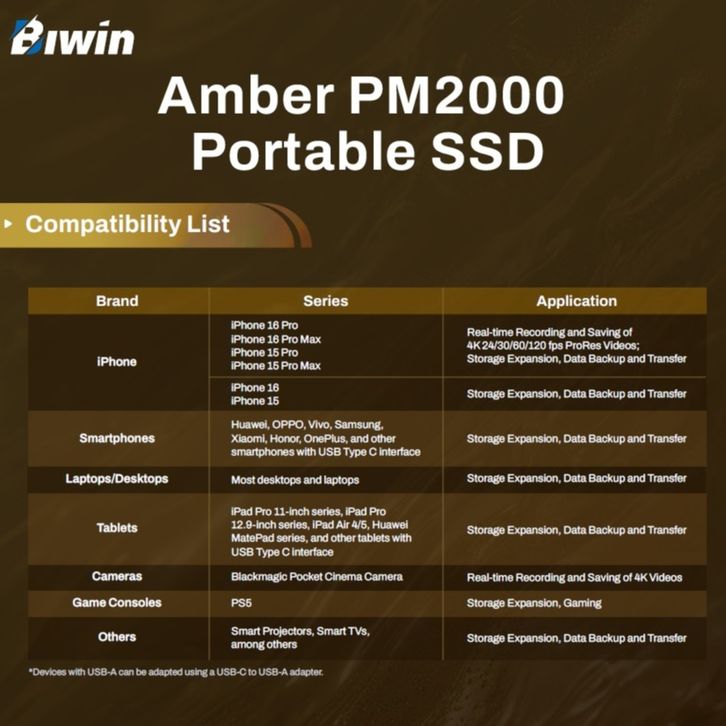 BIWIN AMBER PM2000 WHITE USB 3.2 Gen2x2 MAGNETIC PORTABLE EXTERNAL SSD