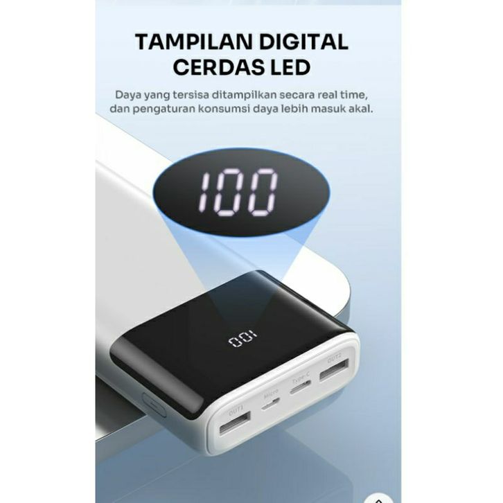 Powerbank ROBOT 20000mAh Smart Fast Charging RT22S 15W 3 port Output LED ORIGINAL.