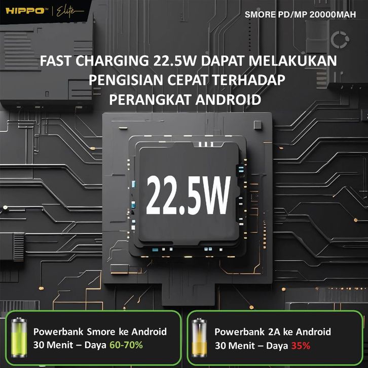 Hippo Powerbank Smore PD 22,5W 20000mAh Quick Fast Charging Power Bank Type C Power Delivery QC 5 2 Port Output USB A U