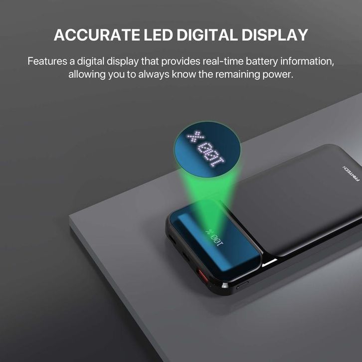Fantech PowerPack T2 Powerbank 10000 mAh 22.5W Fast Charging Mini LCD with Kabel Data Type C USB Lightning