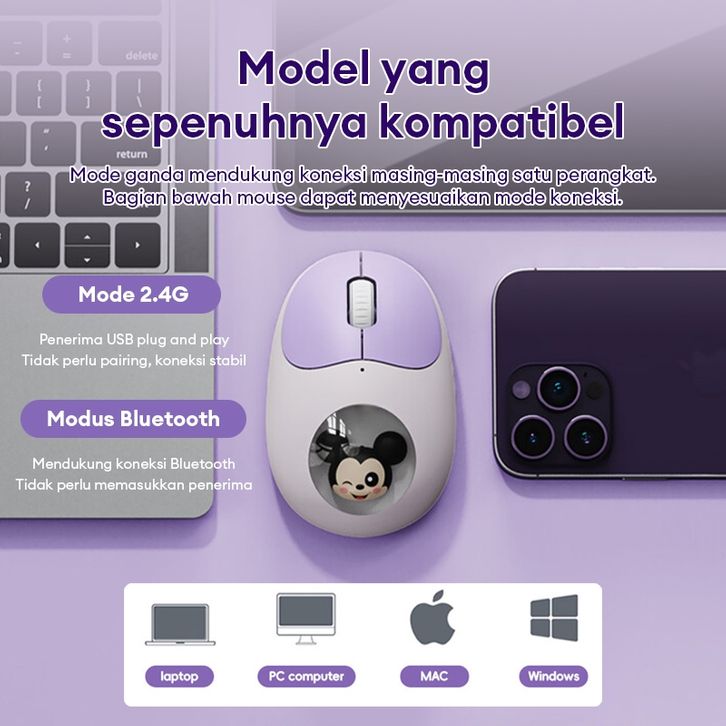 Disney QS-MS02 Wireless Bluetooth Silent Mouse Stable Connection Smart Sleep Long Battery Life Dual M0De 2.4G+BT 1200DP