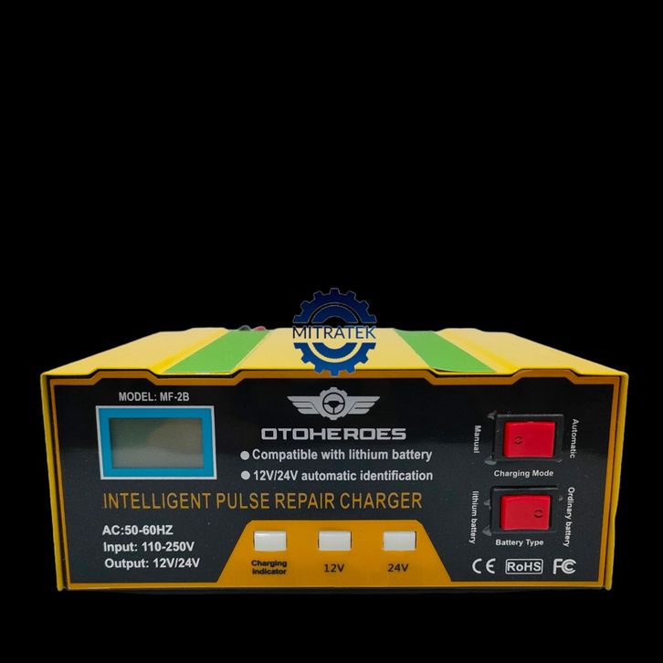 Cas Aki Motor dan Mobil Charger Aki Motor dan Mobil Otomatis 12V/24V 6-105 AH Otoheroes