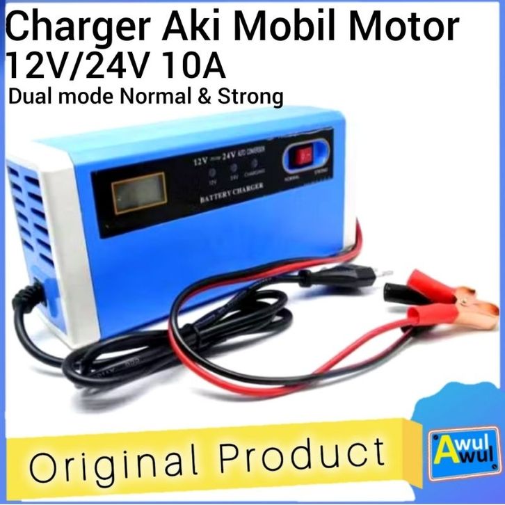Cas Aki / Charger Aki Mobil Motor 12V & 24V 10A dengan Indikator LCD | Car Battery Charger