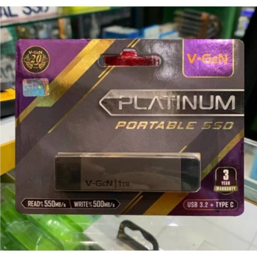 SSD VGEN Platinum 256GB/512GB/1TB Portable USB 3.2 + Type C External Eksternal Mini Solid State Drive Disk OTG V-Gen V