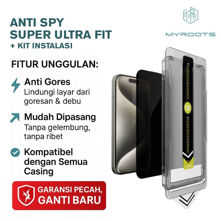 Myroots Tempered Glass Super Ultra Fit Anti Spy - HD Anti Peep For Iphone 16 15 14 13 12 11 Xr Xs X 8 7 Pro Max Plus Ea