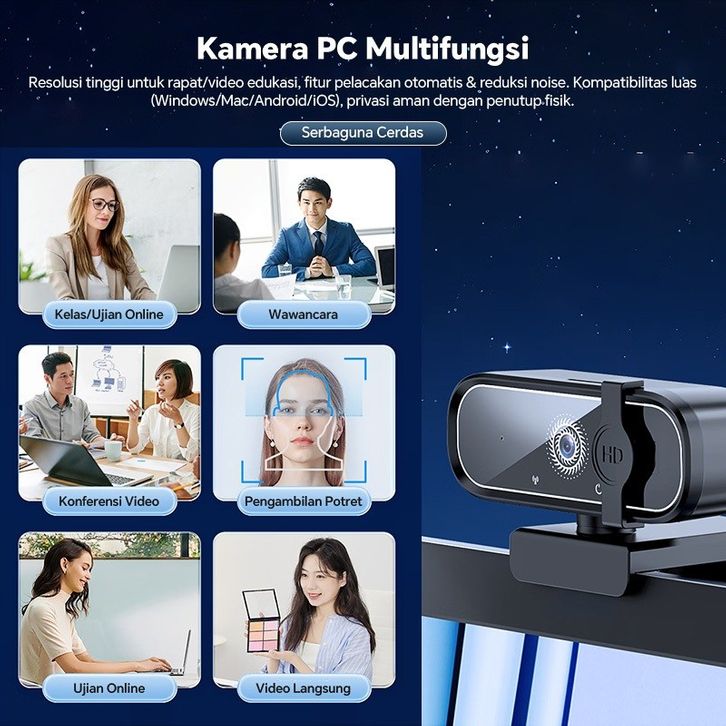 Webcam 1080P Laptop USB Kamera PC With Mic Camera Webcast Live Zoom Google Meeting Camera Built in Mic, Auto-Light Bala
