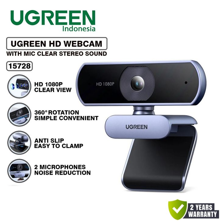UGREEN 15728 Webcam 2K Full HD Resolution 1080P 30fps Built in Dual Mic Auto Focus & Noise Cancelling Web Camera Microp
