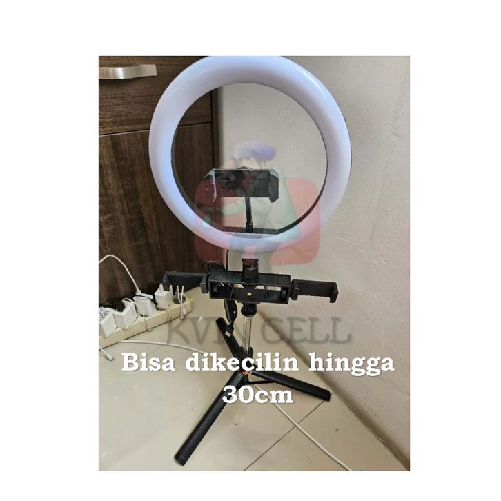 Paket Lampu Ring Light 26cm 33cm Live dan TriP00D Tongsis 1,7 Meter Free 3 Holder Hp Live Studio Streaming Striming Jua